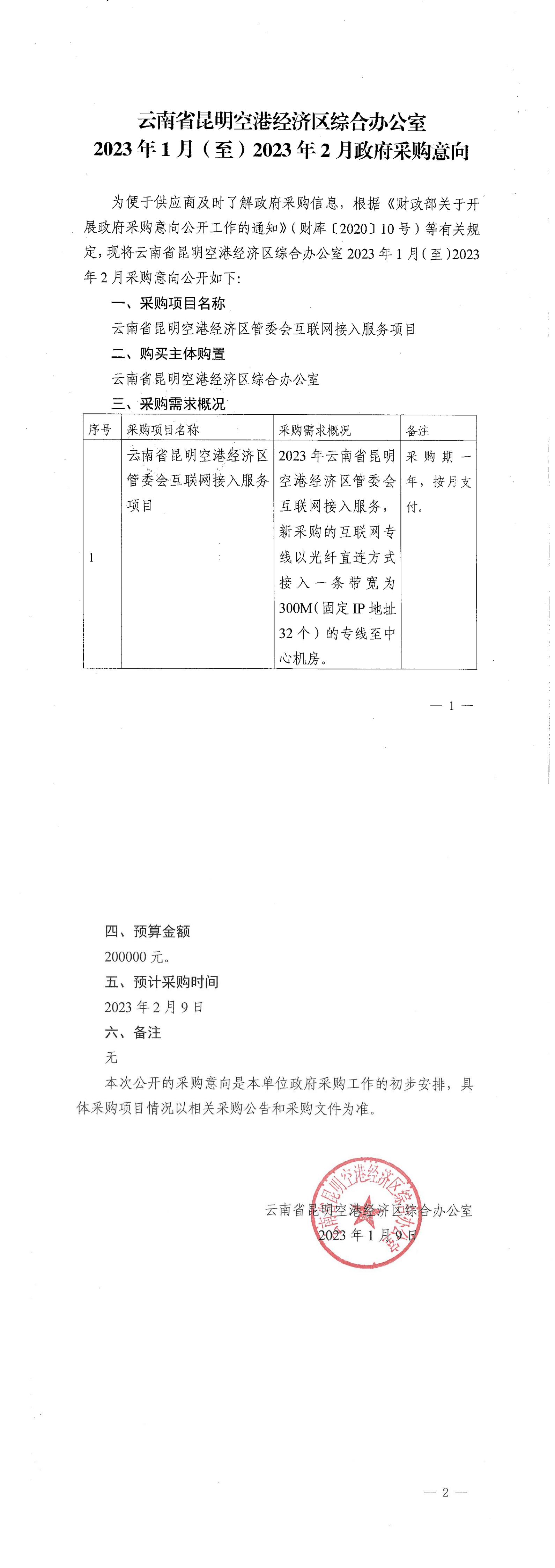 云南省昆明空港经济区管委会互联网接入服务项目采购意向公开