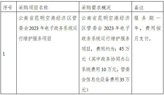云南省昆明空港经济区综合办公室2023年2月(至)2023年3月政府采购意向