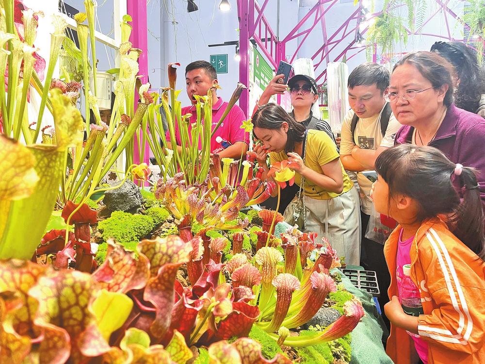 在本次花卉展上,6个展馆中各色花卉争奇斗艳。其中,热植馆成为人气最旺、交易最火爆的展区,2025亚洲国际热植展同期举办,吸引来自中国、泰国、印尼、马来西亚、厄瓜多尔等国家的80余家企业参展。