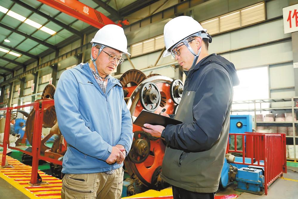 新区驻企特派员到企业了解生产情况。记者周凡/摄