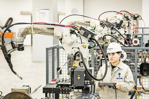 1月8日,唐山松下产业机器有限公司员工在赶制机器人产品订单。(资料片)记者赵杰 摄
