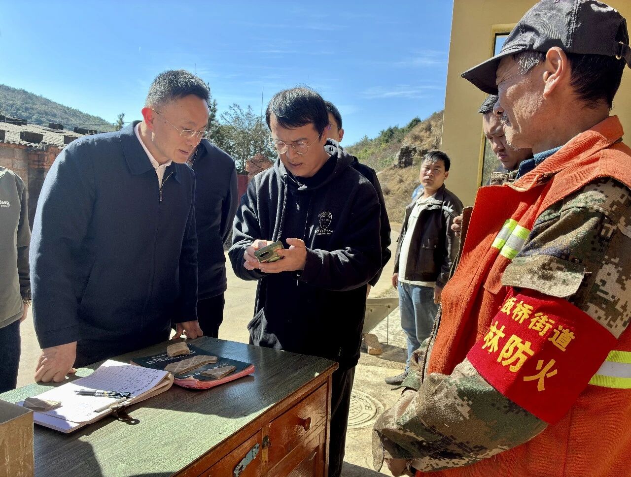 在大板桥街道羊桃箐检查点,调研组翻阅入山登记台账,询问火源收缴和物资储备情况;在祭天山瞭望塔,了解护林员巡查范围和值班安排。段宏波指出,通信要畅通,值班人员要24小时在岗,防火物资要清点到位,应急预案要经常演练,确保火情早发现、早处置。