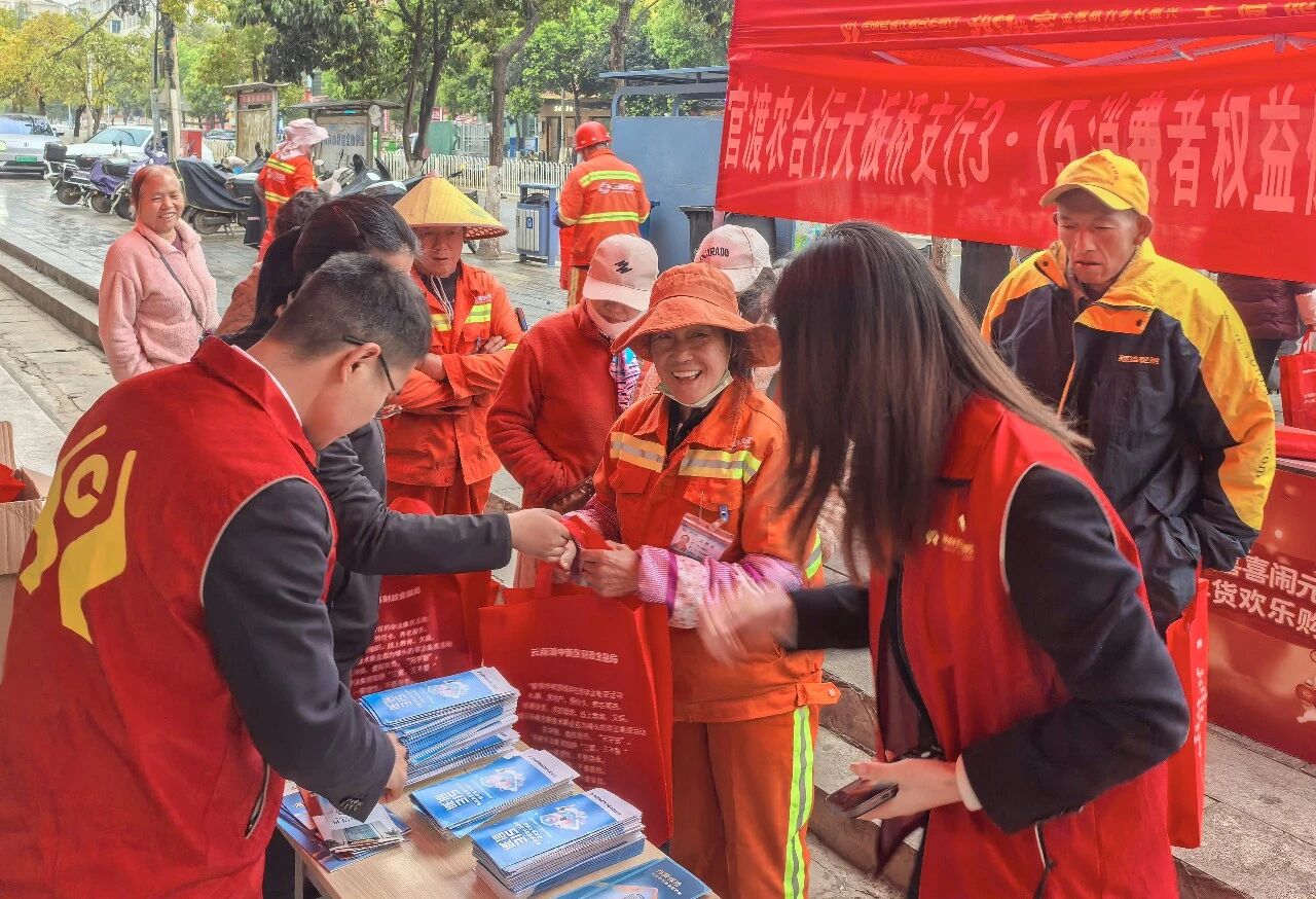 在昆明官渡农村合作银行大板桥支行网点,工作人员通过悬挂宣传横幅、摆放展板、发放宣传折页、滚动播放消保视频等形式,面向办理业务的群众普及金融消费者八项基本权利、个人信息保护、理性投资、防范非法集资、电信网络诈骗等知识,用通俗易懂的语言讲解“保本高息”“代理退保”“刷单返利”等常见陷阱,引导群众远离非法金融活动,守好“钱袋子”。