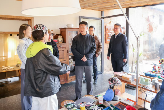 杨东伟一行深入村庄,查看基础设施建设、直播基地运营、乡村产品推广等情况,与项目经营者、旅居创业者、小院主理人等深入交流,了解项目建设运营和生活方面遇到的困难和问题。