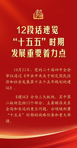 中华民族伟大复兴的壮阔征程,再次镌刻下时代印记。2025年10月23日,如潮的掌声中,党的二十届四中全会审议通过《中共中央关于制定国民经济和社会发展第十五个五年规划的建议》。这是乘势而上、接续推进中国式现代化建设的又一次总动员、总部署——在以习近平同志为核心的党中央坚强领导下,全党全军全国各族人民万众一心、勠力进取,为基本实现社会主义现代化奠定更加坚实的基础,不断开创强国建设、民族复兴伟业新局面。