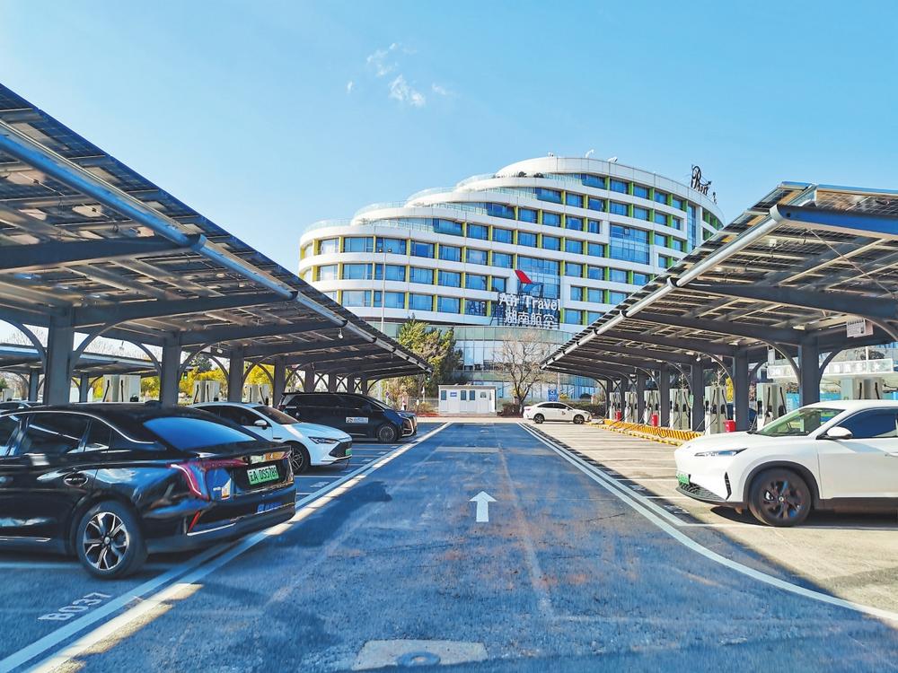 “这个项目于2025年10月初开始建设,一期已建成约1500平方米屋顶光伏,一天大约能发电400度到800度,储能设备可存储1000度电,112个充电桩可为新能源网约车、出租车、家用车和大巴车提供充电服务。”滇中汇能公司总经理助理衣然说,该项目还有一座出租车专用换电站和一座智能化洗车场,具备大规模新能源车辆高效补能服务能力,日均可服务超千辆次电车充换电,显著提升机场交通枢纽绿色出行保障能力。